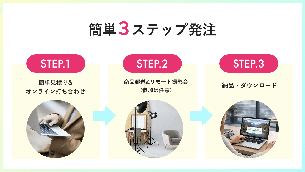 1. オンラインで手間なく撮影!かんたん3ステップ発注