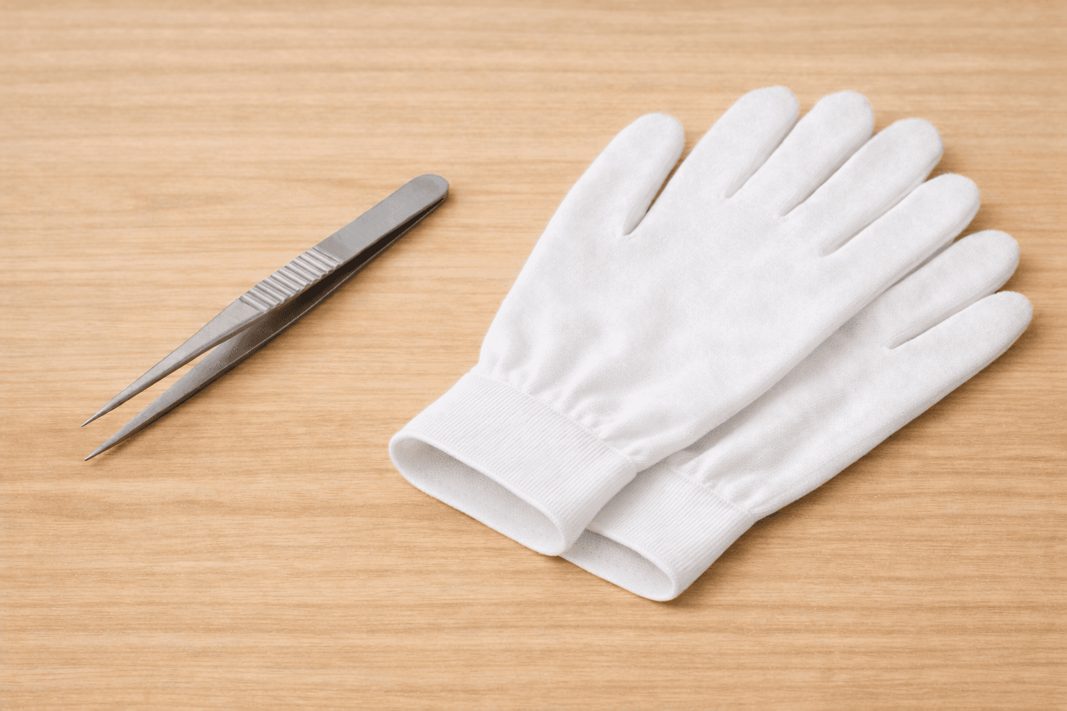 ピンセットまたは手袋は、アクセサリーに指紋がつくのを防いでくれるので、指紋を拭き取る手間を減らすことができます。