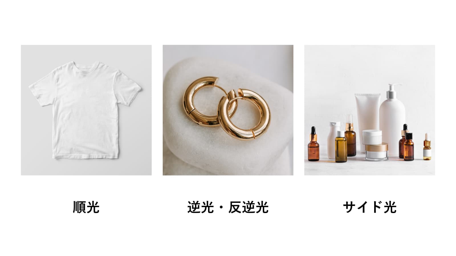 商品写真の印象はライティングにより大きく変わるため、撮影前に「どの光を」「商品のどこに」「どのくらいの強さで当てるか」を考えておくと良いです。
