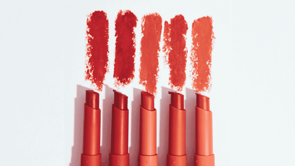 リップや口紅はサイズが小さいため単品商品カットに加えて、商品の集合カットも積極的に撮影しましょう。並べる順番を口紅の色がグラデーションになるように並べるとおしゃれに見えます。また、口紅・リップもモデル撮影は必須です。上の写真のように唇に塗っている途中の写真や手に付けて実際に塗った場合の色味を伝えるようにしましょう。