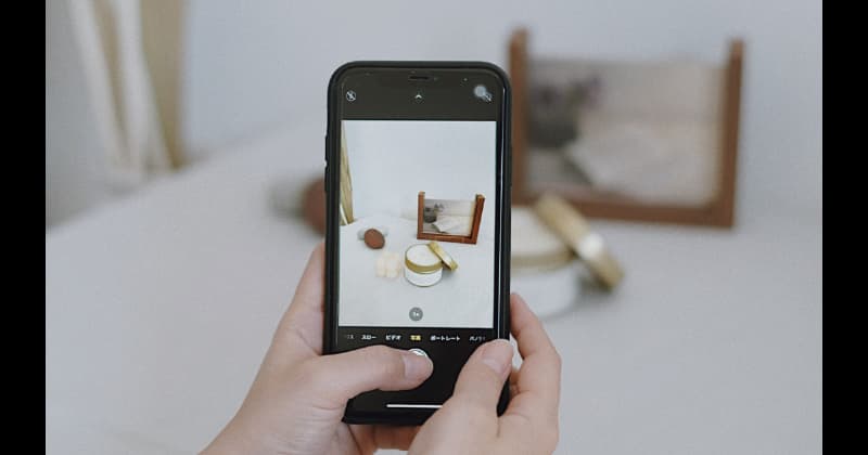 化粧品の物撮りではポートレートモードでの撮影がおすすめです。ポートレートモードは被写体以外をぼかして撮影する方法として、どのスマホに搭載されています。誰でもかんたんにおしゃれでダイナミックな写真を撮ることができます。