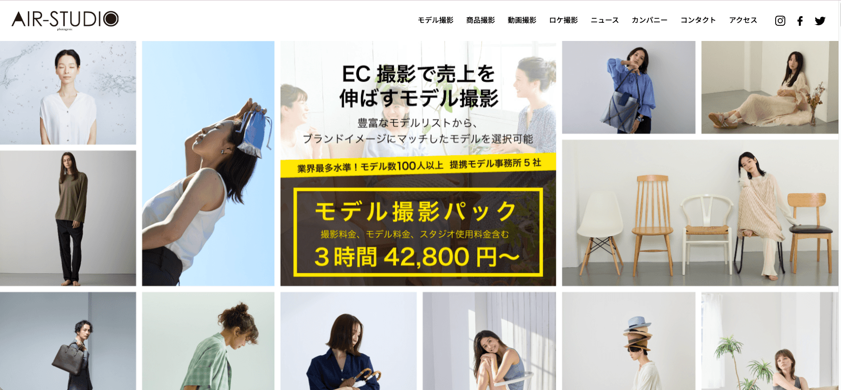 登録モデルの中から商材に適したモデルを選ぶことができます。また、自社運営のハウススタジオで撮影するため、