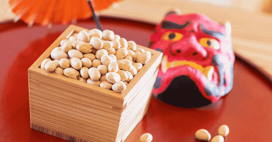 豆や鬼のお面に、赤系の背景を使うと良いでしょう。