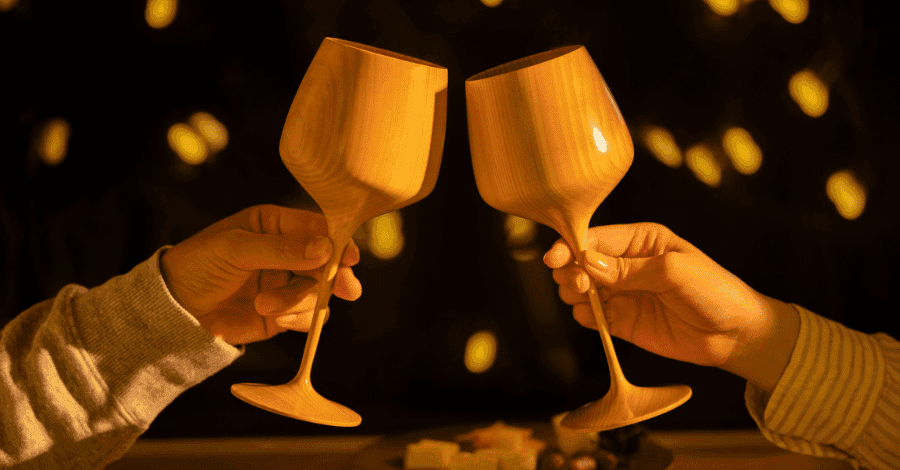 上の写真では、ワインを注いでいる途中を撮影してインスタ映えした写真にしています。