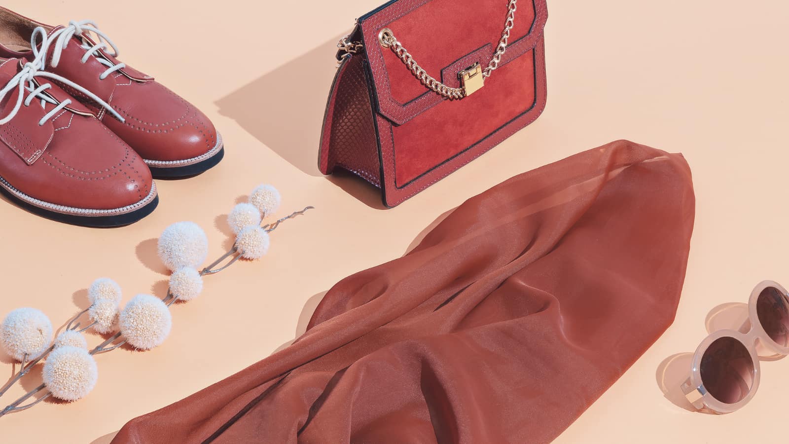小物を使う場合は統一性が大切です。例えば、革靴の撮影であれば革製品のカバンやベルトを並べましょう。素材が揃っていれば、多くの小物を使ってもまとまり感のある写真になります。