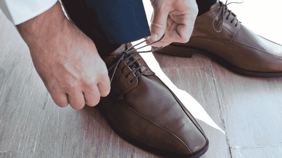 靴紐を結んでいるシーンのカットも鉄板です。靴紐のデザインに目を惹き付けることもできます。