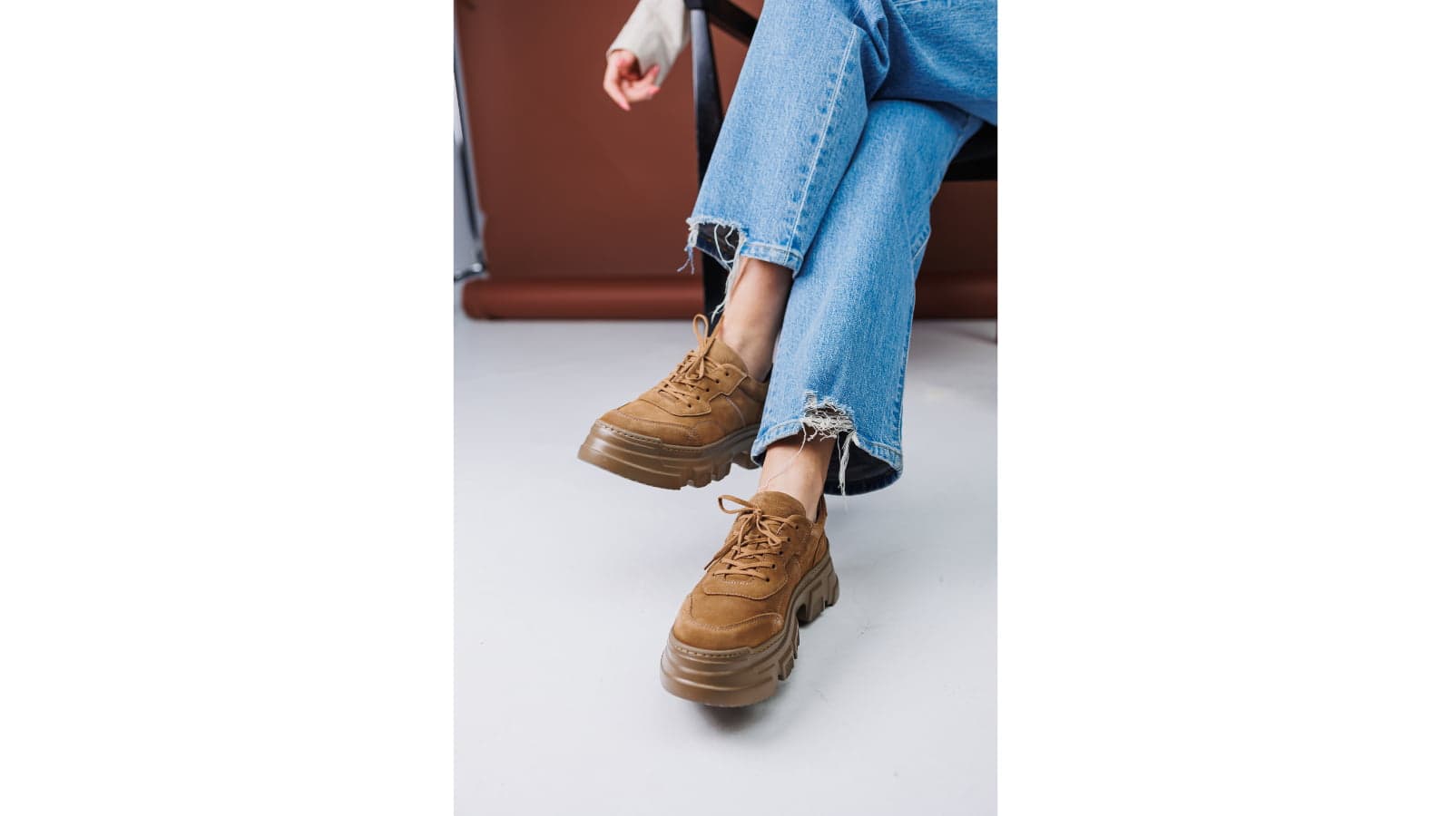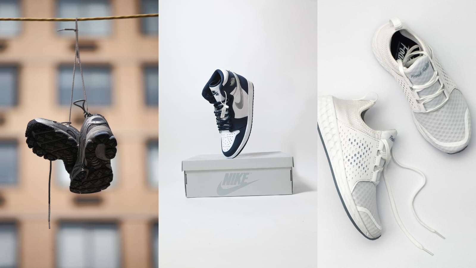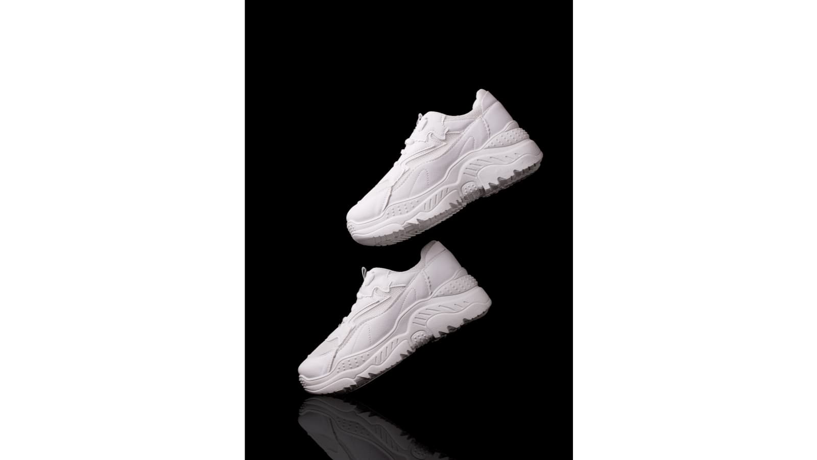 靴紐を持ってぶら下げたり、歩いているシーンをイメージしてスニーカーを配置すると、躍動感が出るのでおすすめです。