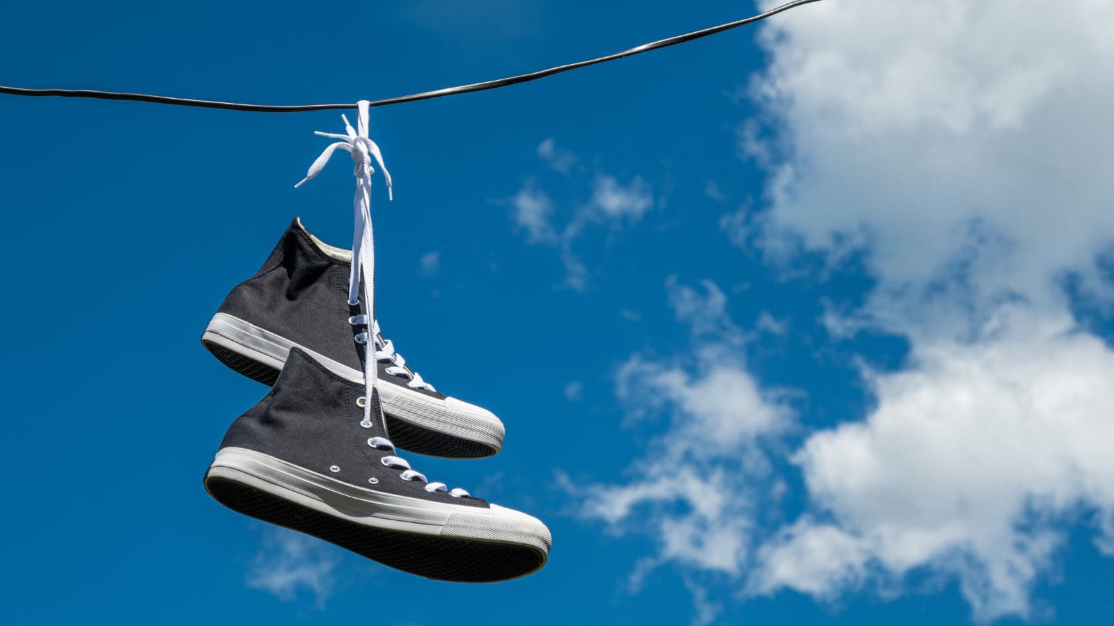 天気が良い日は、青空を背景にスニーカーを撮影すると、爽やかな印象の写真に仕上がるのでおすすめです。